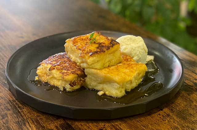 豆乳を使ったフレンチトースト。豆乳のアイスを添えております。
